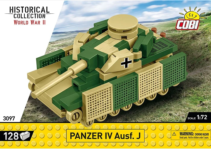Mini model z klocków konstrukcyjnych COBI został zaprojektowany w skali 1:72 i składa się ze 128 wysokiej jakości elementów. Po zbudowaniu czołg ma 9,5 cm długości. Pomimo kompaktowego rozmiaru model zachował wszystkie najważniejsze cechy swojego historycznego pierwowzoru! Na bokach pojazdu znajdują się nadrukowane oznaczenia niemieckie. Również takie detale jak klapy serwisowe i wentylacja silnika to nadruki! Czołgiem można poruszać dzięki zamontowanym kółkom. Również wieża czołgu jest ruchoma i można nią obracać. Na szczególną uwagę zasługują osłony boczne kadłuba oraz wieży, tak charakterystyczne dla Panzer IV Ausf. J!