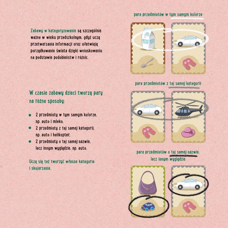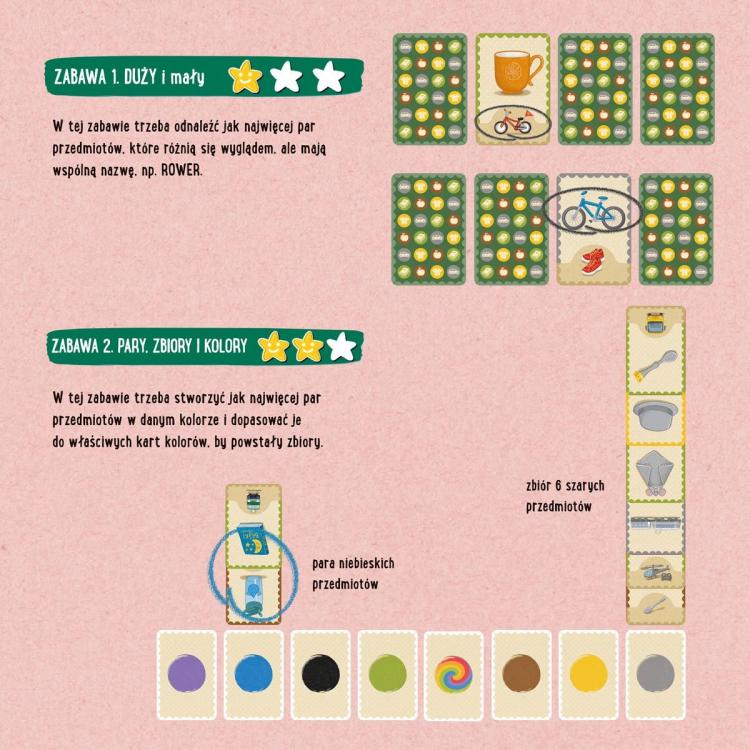 "Feluś i Gucio grają w pary"  to aktywizująca gra edukacyjna kształtująca myślenie logiczne dzieci na różnych etapach wieku przedszkolnego. Gra wzmacnia koncentrację, uczy dostrzegania różnic i podobieństw oraz kategoryzowania przedmiotów. Dzięki tworzeniu par na różne sposoby dzieci rozwijają: spostrzegawczość, pamięć wzrokową oraz słownictwo. Doskonalenie procesów myślowych przedszkolaków to podstawa przygotowania dziecka do dalszych etapów edukacji. Zestaw doskonale się sprawdzi i w domu, i w przedszkolu.