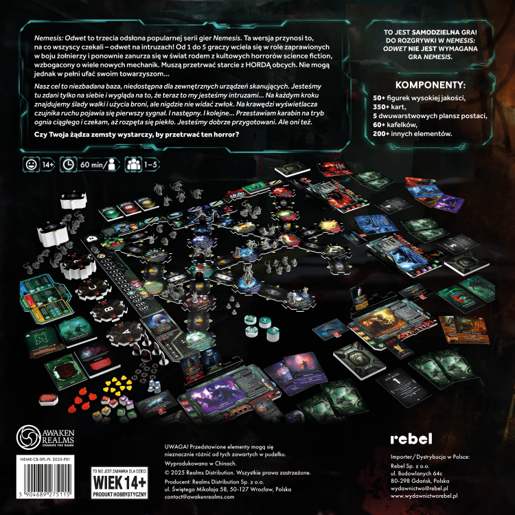 Nemesis: Odwet to trzecia odsłona klimatycznej gry z gatunku survival horror, której głównymi motywami są blef, zdrada i walka z nieuchwytnym zagrożeniem. Ta wersja przynosi to, na co wszyscy czekali: odwet na intruzach! Uczestnicy będą mieli okazję wcielić się w zaprawionych w boju żołnierzy wyposażonych w profesjonalny sprzęt, wysłanych do bazy opanowanej przez śmiertelnie niebezpieczne kosmiczne monstra. Choć wyruszyli ze wspólną misją, każdy z nich ma też własne cele, a ostatecznie najważniejszym będzie po prostu przetrwanie.