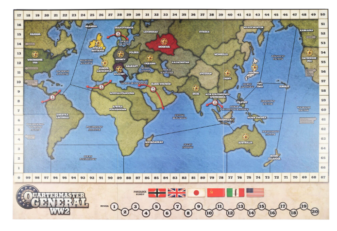 Quartermaster General: WW2 – Druga edycja to dynamiczna gra strategiczna osadzona w realiach drugiej wojny światowej, w której gracze dowodzą kluczowymi dla tych wydarzeń mocarstwami. Najważniejszym elementem zmagań pomiędzy graczami są linie zaopatrzenia zapewniające niezbędne zasoby zarówno dla armii lądowych, jak i morskich. Przerwij linie zaopatrzenia przeciwnika, a jego jednostki po prostu się poddadzą!