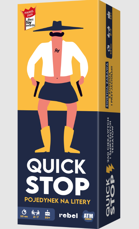 Wyobraź sobie grę w państwa-miasta, tylko bardziej urozmaiconą, zabawniejszą i pełną interakcji! To właśnie QuickStop – imprezówka na miarę naszych czasów, w której musisz wykazać się nie tylko bystrością, ale i refleksem. Podczas zabawy każdy z graczy dostaje na rękę 5 kart z literami, a następnie odsłaniany jest wspólny temat. Naszym zadaniem jest wymyślanie haseł, które do niego pasują, a jednocześnie zaczynają się od którejś z posiadanych liter. Gdy padną 3 hasła, kategoria się zmienia, więc trzeba sprawnie przeskakiwać między tematami!