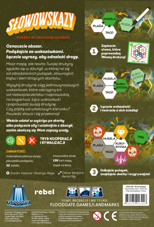 Słowowskazy to gra skojarzeniowa, w której jedna osoba prowadzi pozostałych przez dżunglę podając jednowyrazowe wskazówki. Odpowiednie rozlokowanie słów i sprytne łączenie ich w grupy pozwoli skierować drużynę w odpowiednią stronę, kolejne wskazówki będą bowiem nawiązywały do poprzednich. Celem gry jest zebranie jak największej liczby skarbów i wydostanie się z wyspy zanim skończą się dostępne kafelki.