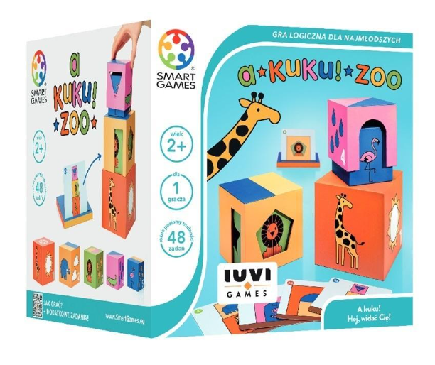 A kuku! Zoo to świetna edukacyjna gra dla dzieci w wieku przedprzedszkolnym, które dzięki niej udoskonalą zdolności językowe i poszerzą wiedzę o kolorach, zwierzętach i pojęciach przestrzennych, jak powyżej, poza, wewnątrz i na zewnątrz.