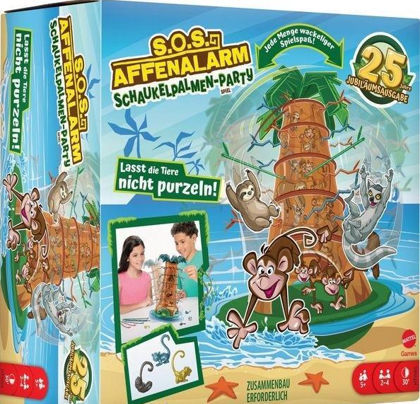 Świętuj 25. rocznicę gry Spadające małpki z tą rozbujaną edycją specjalną z 3 różnymi rodzajami zwierzątek spadającymi z drzewa ruszającego się na boki.