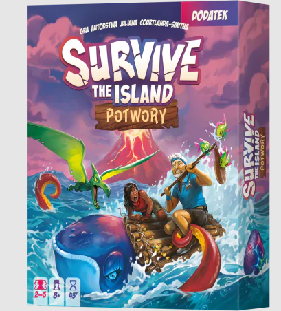 Survive the Island: Potwory to rozszerzenie wprowadzające 3 nowe rodzaje stworów (pterodaktyle atakujące samotne cele, krakeny porywające poszukiwaczy i niszczące tratwy wieloryby), a także 2 nowe rodzaje płytek (z małymi, ale niezwykle wygłodniałymi piraniami i z jajami, z których mogą wykluć się różne rodzaje stworów). Elementy te nie wprowadzają dodatkowych zmian w przebiegu rozgrywki ani w warunkach zwycięstwa i można je dowolnie łączyć z grą podstawą.
