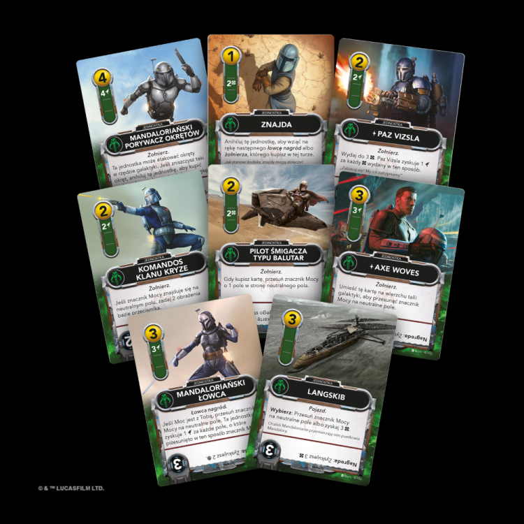 Star Wars: The Deckbuilding Game - Mandalorianie to rozszerzenie dodające do międzygwiezdnych potyczek zupełnie nową frakcję. Aby wprowadzić ją do gry, musimy mieć dowolną grę podstawową – Mandalorianie zastąpią wówczas wybraną przez nas stronę konfliktu dzięki specjalnej talii i zasadom opisanym w instrukcji. Oprócz tego w pudełku znajdziemy też karty neutralne, które umożliwią nam rozgrywki trzyosobowe w nowym trybie „każdy na każdego”.