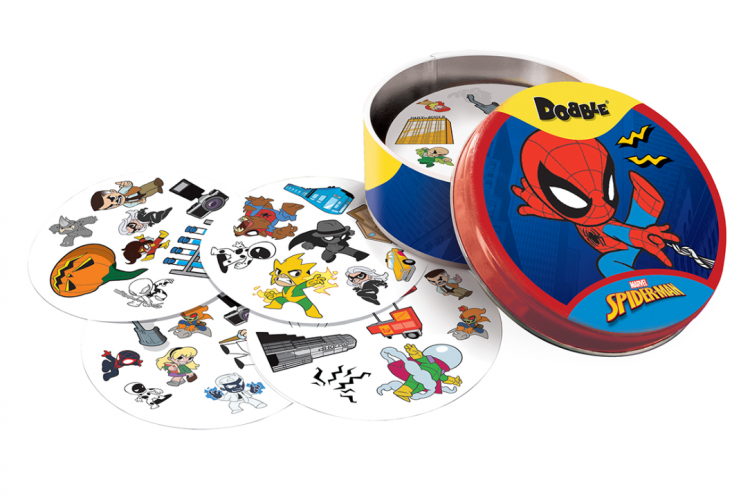 Spider-Man, Venom, ciocia May, Mary Jane i inni zawitali na karty Dobble, by cieszyć najmłodszych i zachęcać ich do rozwijania refleksu i spostrzegawczości. Na 55 okrągłych kartach znajdziemy zarówno kultowe postacie, jak i charakterystyczne przedmioty. Czy uda Ci się wypatrzyć identyczne obrazki zanim zrobią to przeciwnicy?