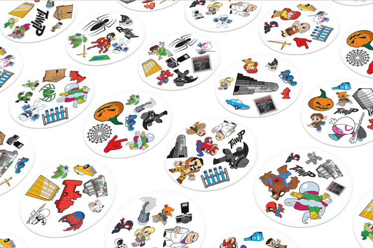 Spójrz na pierwszą kartę, którą trzymasz w ręku oraz na tę, która leży na środku stołu. Znajdź na nich wspólny symbol, nazwij go i szybko pozbądź się swojej karty. Teraz następna! Tylko nie zwątp, dwie dowolne karty zawsze łączy jeden wspólny obrazek.