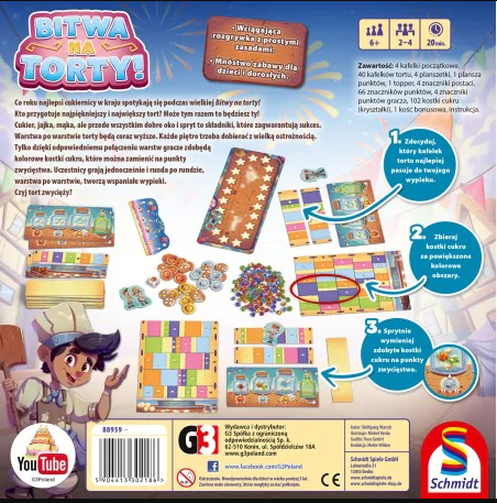 Cukier, jajka, mąka, ale przede wszystkim dobre oko i spryt to składniki, które zagwarantują sukces. Warstwa po warstwie torty będą coraz wyższe. Każde piętro trzeba dobierać z wielką ostrożnością. Tylko dzięki odpowiedniemu połączeniu warstw, gracze zdobędą kolorowe kostki cukru, które można zamienić na punkty zwycięstwa.
