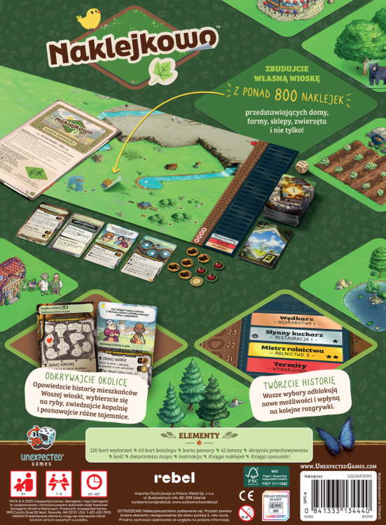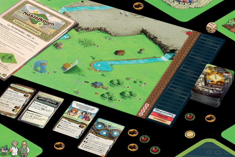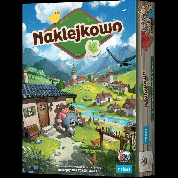 Naklejkowo to przytulna gra rodzinna, w której wspólnie rozwijamy wioskę, odkrywając przy okazji historie jej mieszkańców. Opowieść będzie toczyła się na przestrzeni 10 lat, a każda podjęta przez nas decyzja wpłynie na opisywane wydarzenia i zadowolenie poszczególnych osób, prowadząc nas do 1 z 5 unikalnych zakończeń. Postęp będziemy odnotowywali za pomocą naklejek, umieszczając na mapie kolejne budynki i postacie, a także zapisując kamienie milowe naszej opowieści.